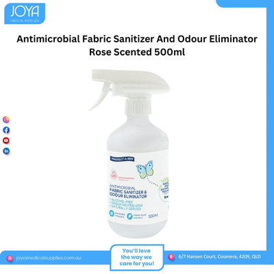 Joya Medical Supplies sells antimicrobial fabric sanitizer and odour eliminator rose scented 500ml in Australia. The antimicrobial fabric sanitizer and odour eliminator is a discreet and effective continence odour solution. Order today!